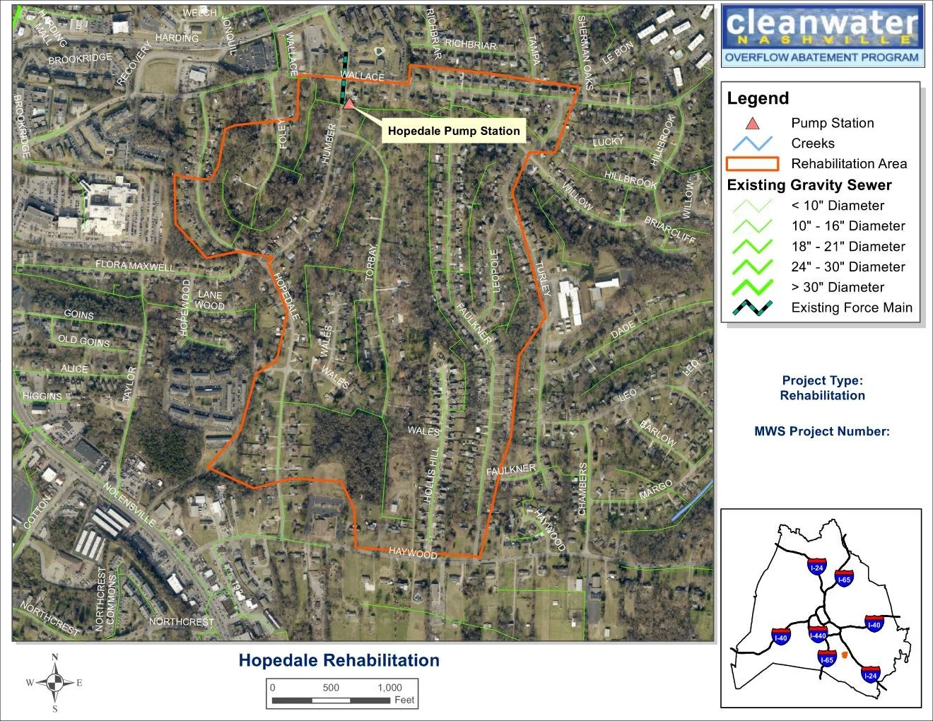 Construction begins today on the Hopedale Rehabilitation project. This project was developed to renew aging infrastructure and address overflows by reducing the amount of rainfall that can enter the system through defects. It consists of the evaluation and rehabilitation, as necessary, of approximately 28,600 linear feet of existing gravity sewer, approximately 150 manholes, and associated service laterals within Metro’s rights-of-way and easements. As part of the Hopedale Rehabilitation area, project underruns will allow MWS to add similar work in the Patricia Drive area. That work consists of rehabilitation of approximately 3,700 linear feet of existing sewer lines, along with services and manholes.